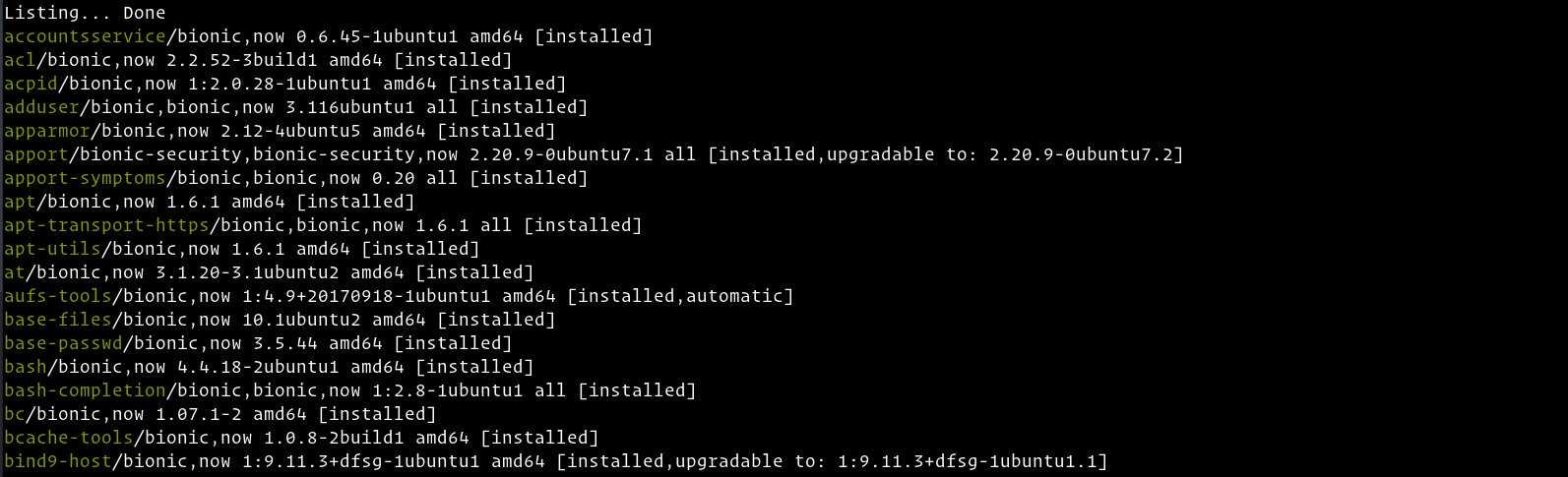 Как видно из выходных данных выше, команда выводит список всех установленных пакетов, включая информацию о версиях пакетов и архитектуре.