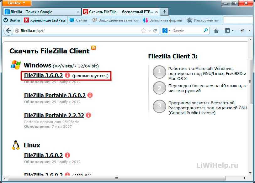 Самым популярным и востребованным FTP-клиентом является FileZilla. Он полностью бесплатный и простой в использовании. С официального сайта можно скачать версии для виндовс, начиная с 7 версии, и для Linux.