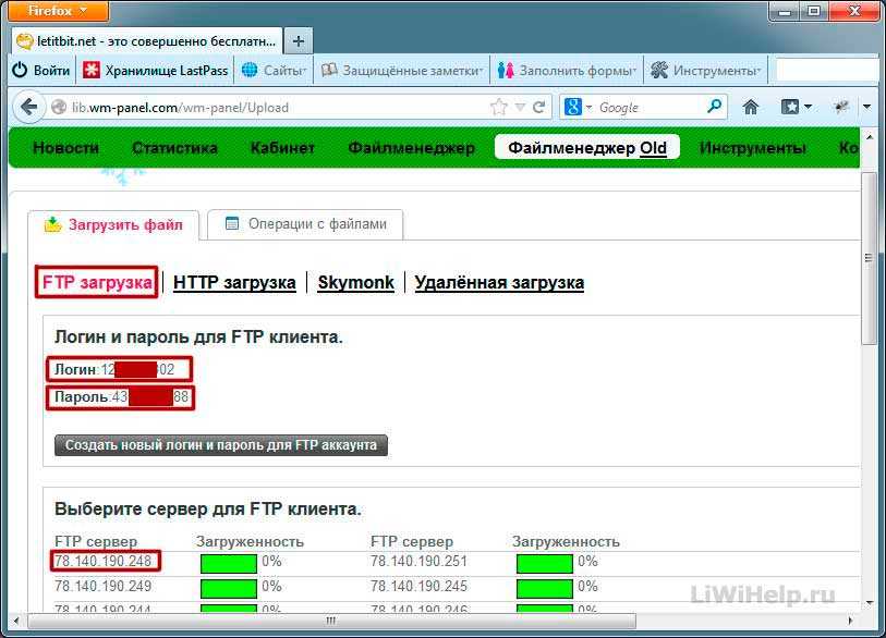 Теперь нужно получить данные (логин, пароль, адрес FTP-сервера), необходимые для входа на сайт по протоколу FTP. На картинке видны все необходимые нам данные для FTP-загрузки (принцип получения данных похож на всех сайтах).