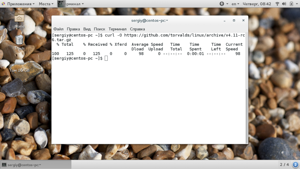 Когда загрузка файла в linux будет завершена, он будет находится в текущей папке. Вывод утилиты состоит из нескольких колонок, по которым можно детально отследить как происходит процесс загрузки: