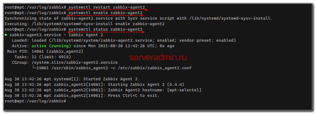Перезапускаем zabbix-agent2 и добавляем в автозагрузку.