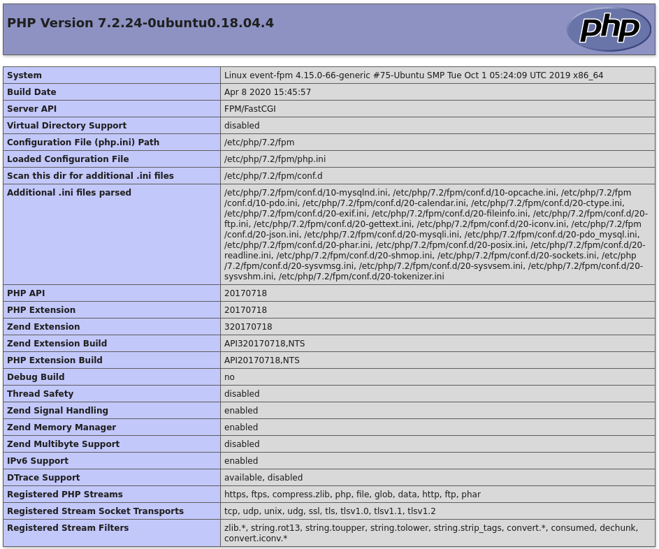 После проверки соответствующей информации о вашем сервере PHP с помощью данной страницы рекомендуется удалить созданный вами файл, поскольку он содержит конфиденциальную информацию о вашей среде PHP и о вашем сервере Ubuntu. Для этого можно использовать :