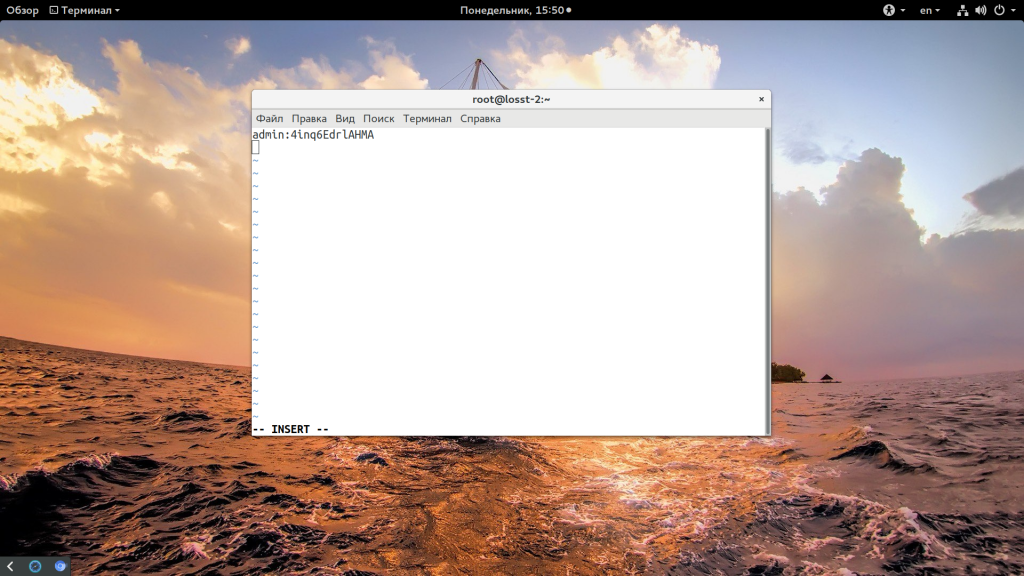 Полученное значение нужно скопировать. Дальше создайте файл /etc/nginx/passwords и поместите в него имя пользователя и пароль через двоеточие, например: