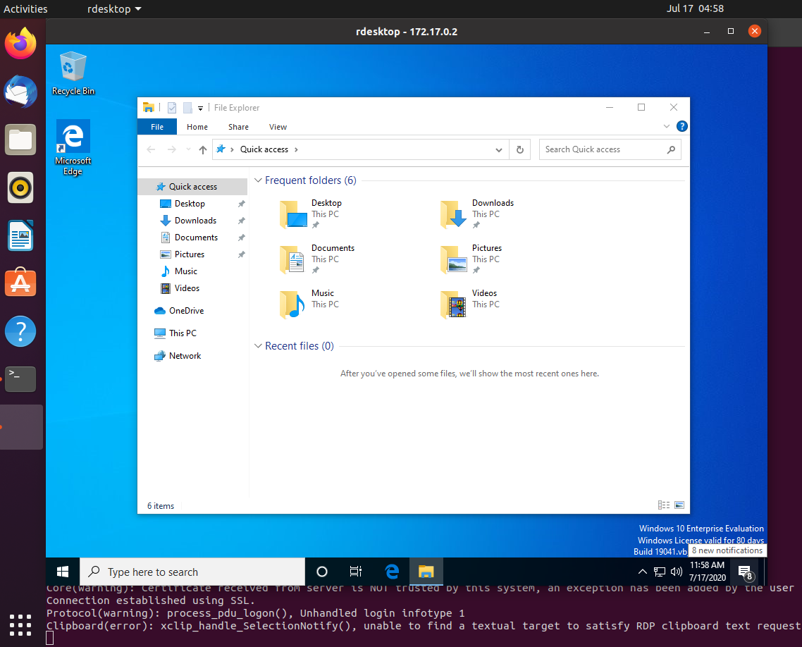 Next, we need to install an RDP client for Linux. A popular one is RDesktop: