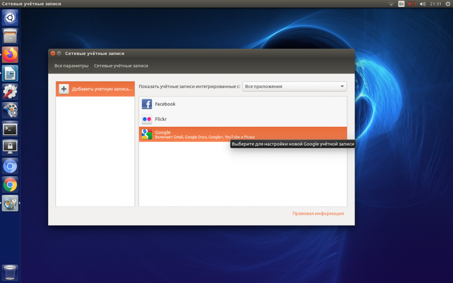 7. Сетевые аккаунты GNOME