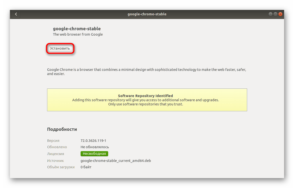 Не всегда у пользователя имеется доступ к браузеру или получается найти подходящий пакет. В таком случае на помощь приходит стандартная консоль, через которую можно загрузить и установить любое приложение на свой дистрибутив, включая рассматриваемый веб-обозреватель.