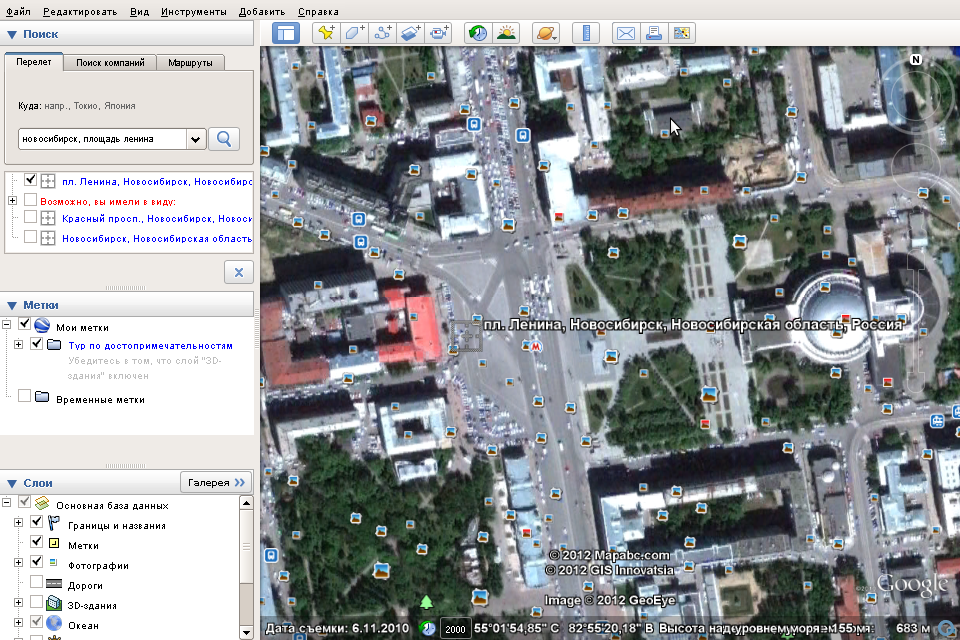 «Кентавр бета КДЕ4 20101227» / «Google Earth for GNU/Linux 6.0.1.2032» с сайта Google[править]