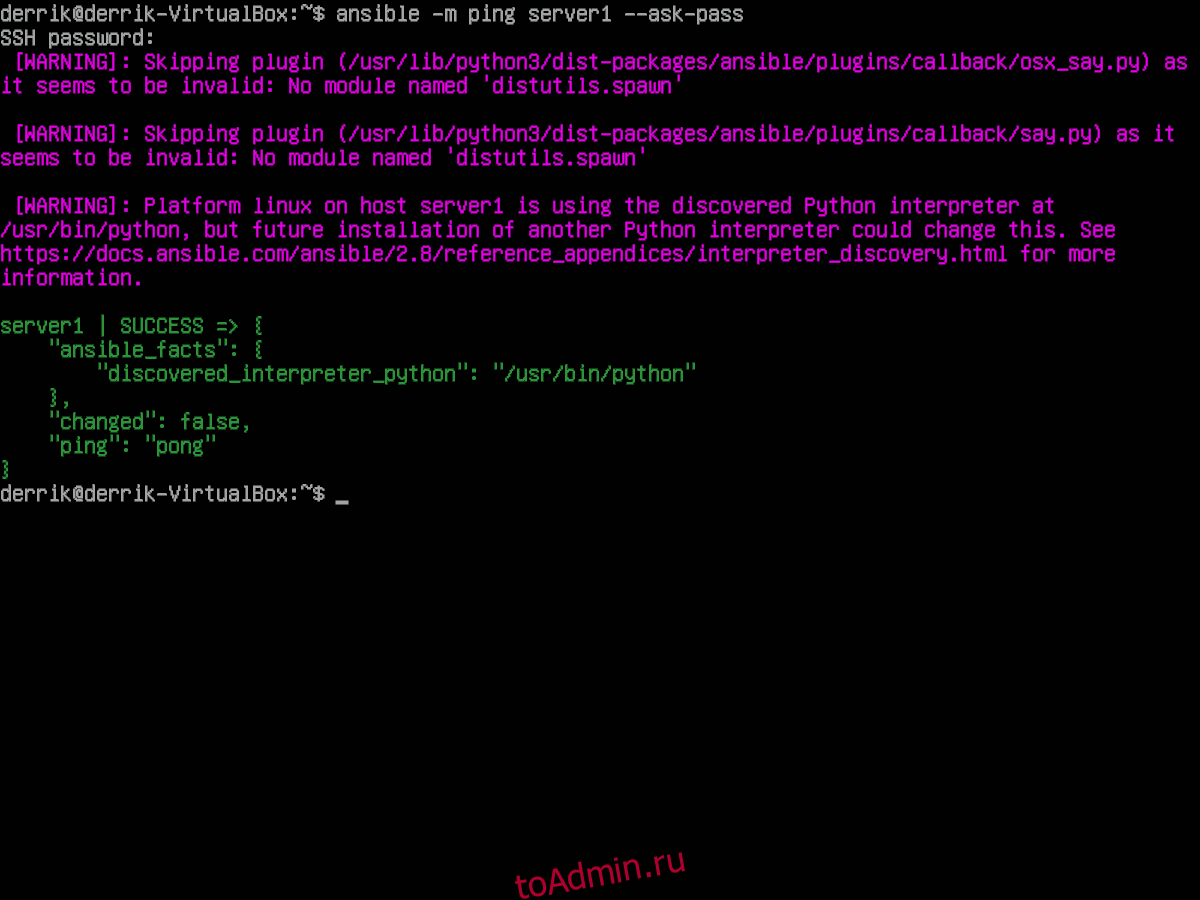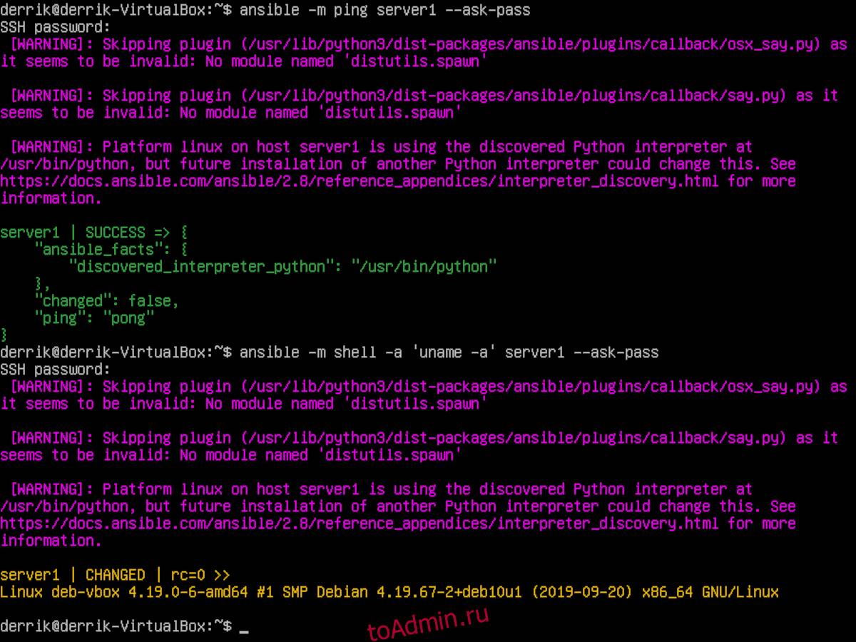 В этом мануале рассматриваются наиболее распространенные команды Ansible, которые вы можете использовать при подготовке серверов. Также вы узнали, как удаленно выполнять команды на ваших нодах, как запускать плейбуки и использовать различные пользовательские настройки.