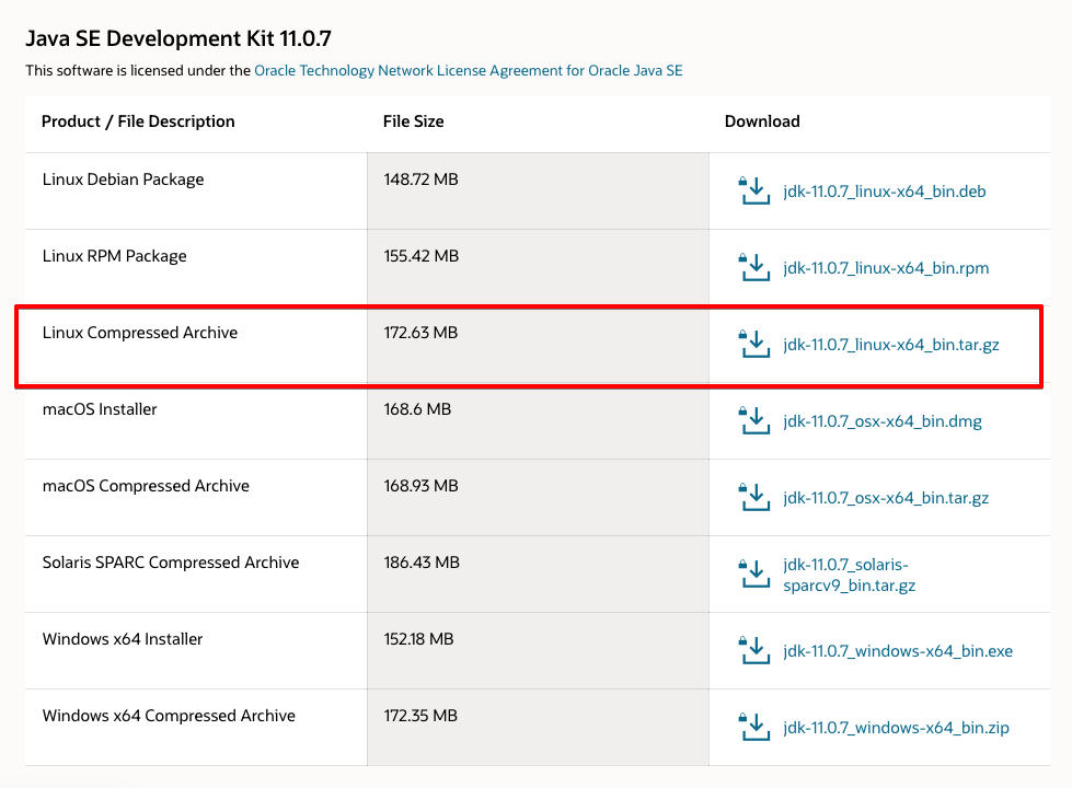 ### Oracle JDK 12 ### wget --no-check-certificate --no-cookies --header "Cookie: oraclelicense=accept-securebackup-cookie" https://download.oracle.com/otn-pub/java/jdk/12.0.2+10/e482c34c86bd4bf8b56c0b35558996b9/jdk-12.0.2_linux-x64_bin.deb ### Oracle JDK 11 ### LOGIN REQUIRED. USE WEB BROWSER TO DOWNLOAD. ### Oracle JDK 8 ### LOGIN REQUIRED. USE WEB BROWSER TO DOWNLOAD.