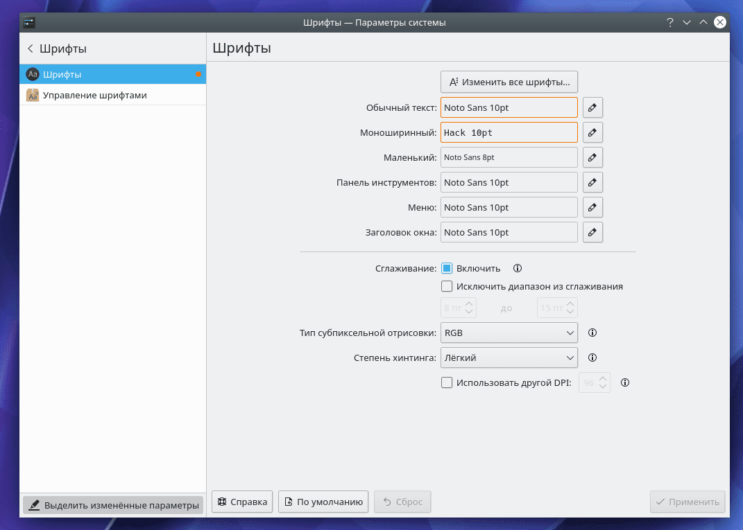Системные настройки — Подсветка измененных параметров