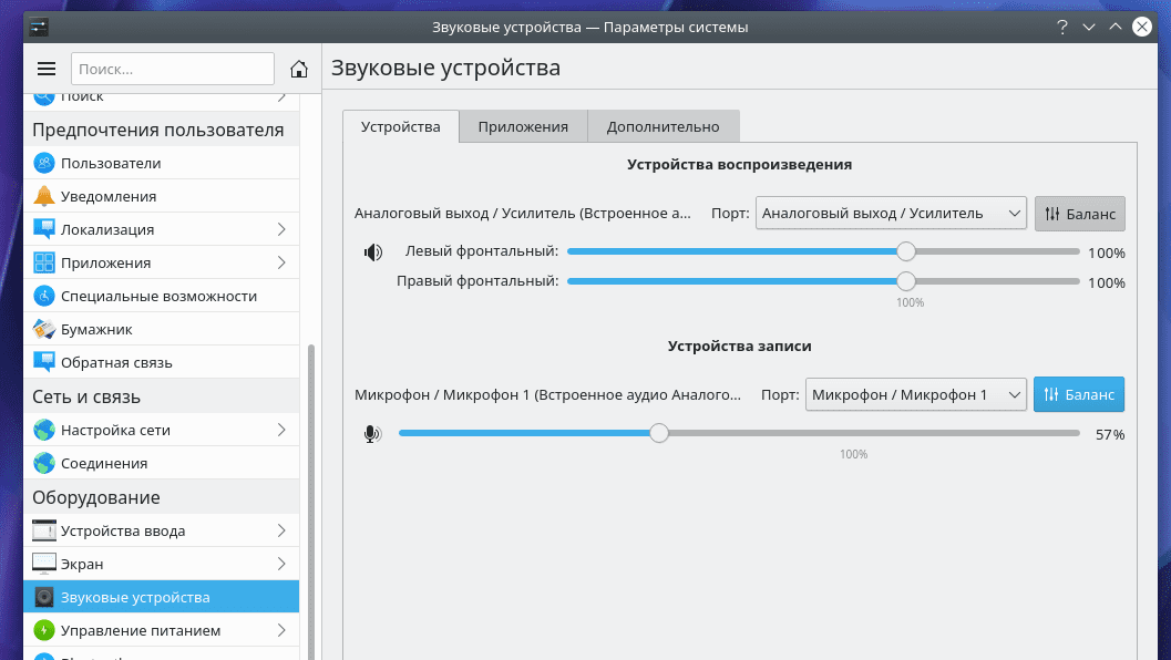Настройка Звуковых устройств