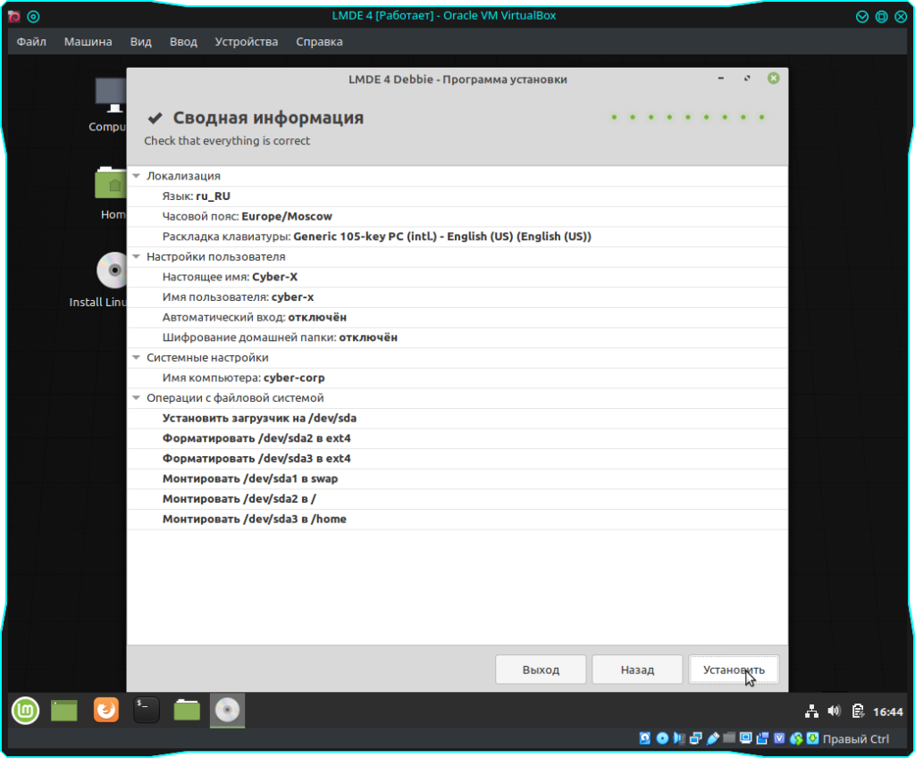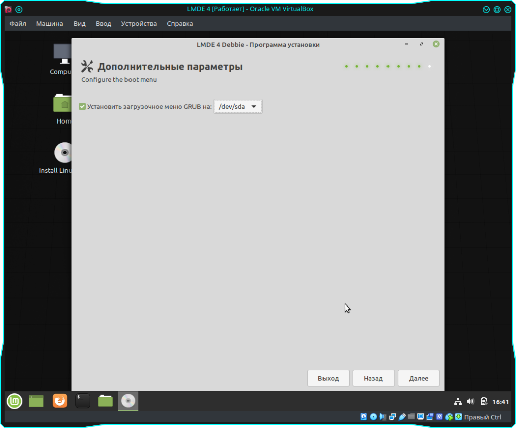 После чего нажимаем кнопку “Далее” и указываем загрузочную область, далее сверяемся со всеми параметрами которые мы указывали при установке и жмем кнопку “Установить”: