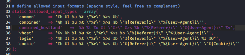 GoAccess позволяет использовать любой формат пользовательского лог-файла. Предопределенные варианты включают, но не ограничиваются ими: