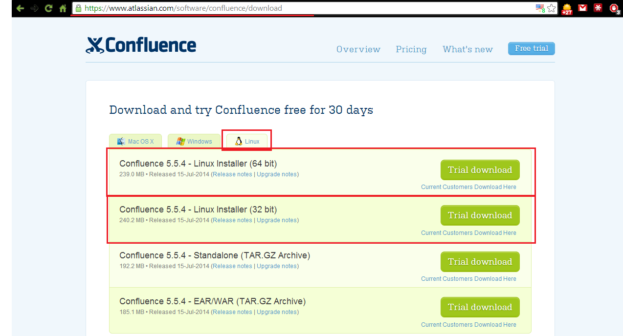 # cd /usr/local/src # wget http://www.atlassian.com/software/confluence/downloads/binary/atlassian-confluence-5.5.4-x64.bin
