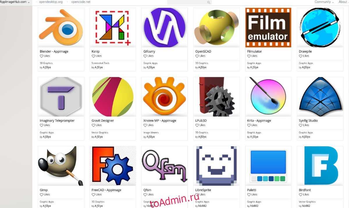 Шаг 1. Перейдите на AppImageHub.com. Оказавшись там, прокрутите вниз до раздела категорий. Есть много категорий, включая аудио, образование, игры и т. Д.