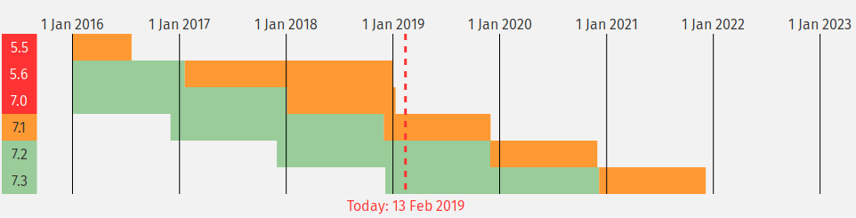Перед тем как определится какую версию PHP использовать я всегда смотрю на сайте Supported Versions PHP.