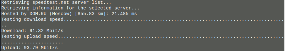 Чтобы проверить скорость интернет linux достаточно запустить скрипт без параметров:
