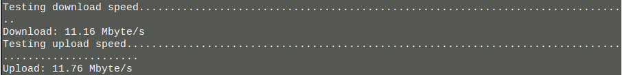 Once installed you can simply call the utility by typing “speedtest” at the command line. This will give you all the default information that you would see on the web version of speedtest.net.