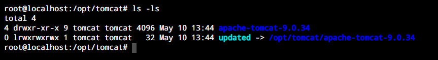 Чтобы иметь больший контроль над версиями и обновлениями, мы создадим символическую ссылку которая будет указывать на каталог установки Tomcat: