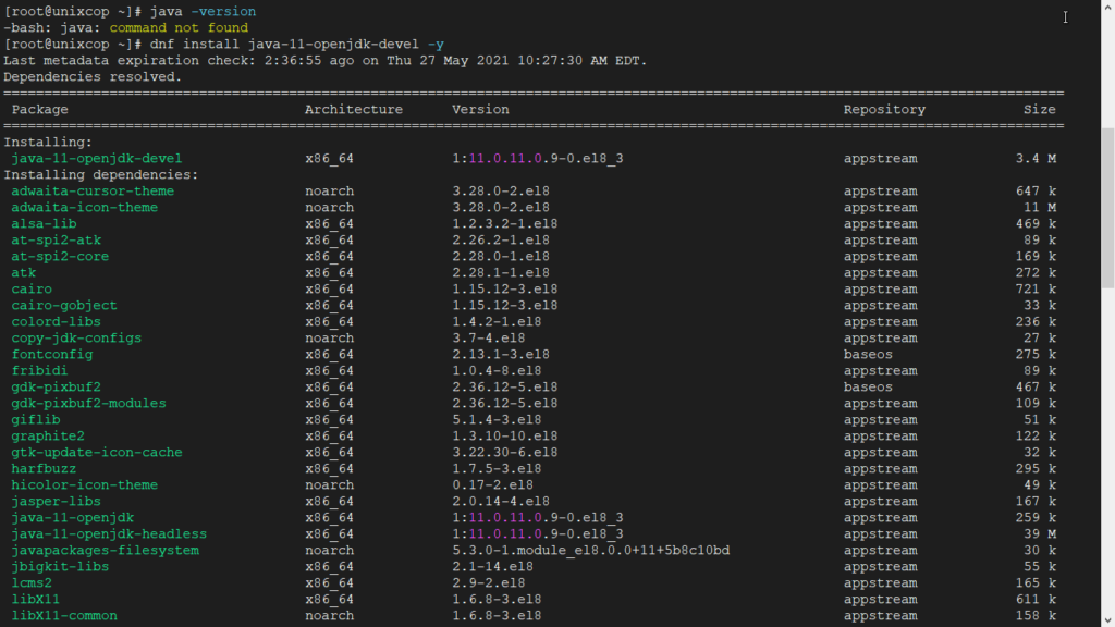 Moving forward, let’s install Java.Apache Tomcat will not work properly if Java is not present on the system.Additionally, we need to ensure that we are installing Java OpenJDK 11. Because it is open-source and a long term release, we will not run into any licensing issues. To accomplish this task, we will use the following command.