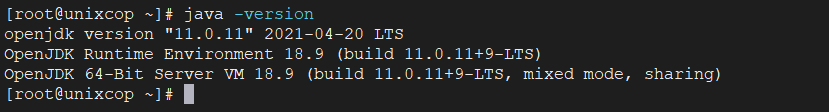 Once Java is installed, you can verify the Java version by using the following command.