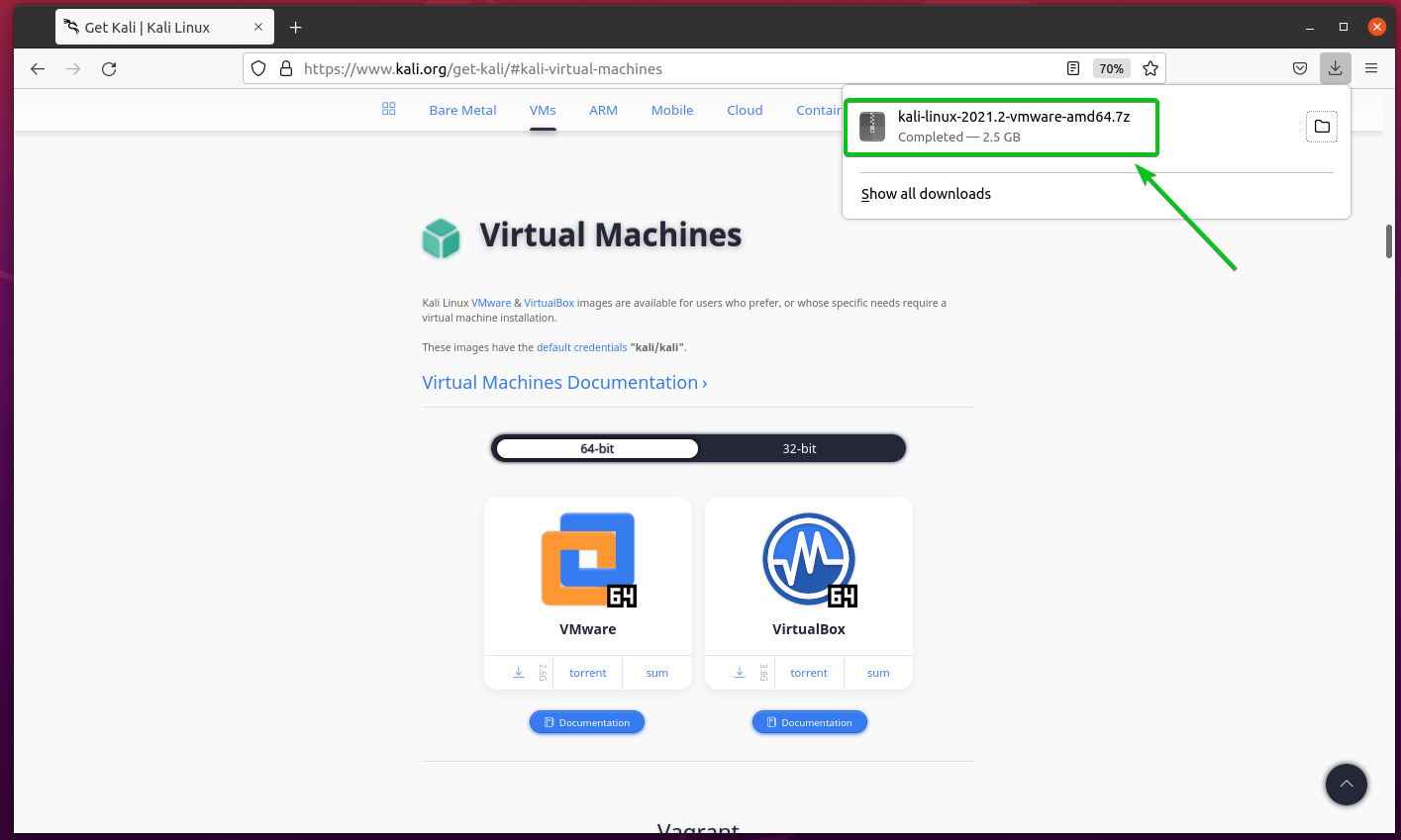 Установка здесь немного длинная, затем она будет перезапущена. Имя пользователя и пароль: vagrant;