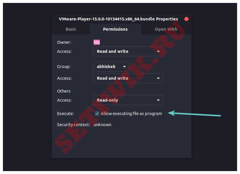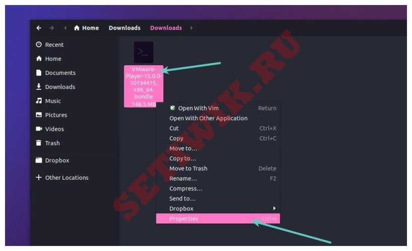Вы также можете сделать это через графический интерфейс. Просто перейдите в папку, в которую был загружен файл. Щелкните по нему правой кнопкой мыши и сделайте его исполняемым.