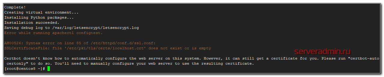 После установки пакетов certbot напишет ошибку, что не может сам настроить apache.