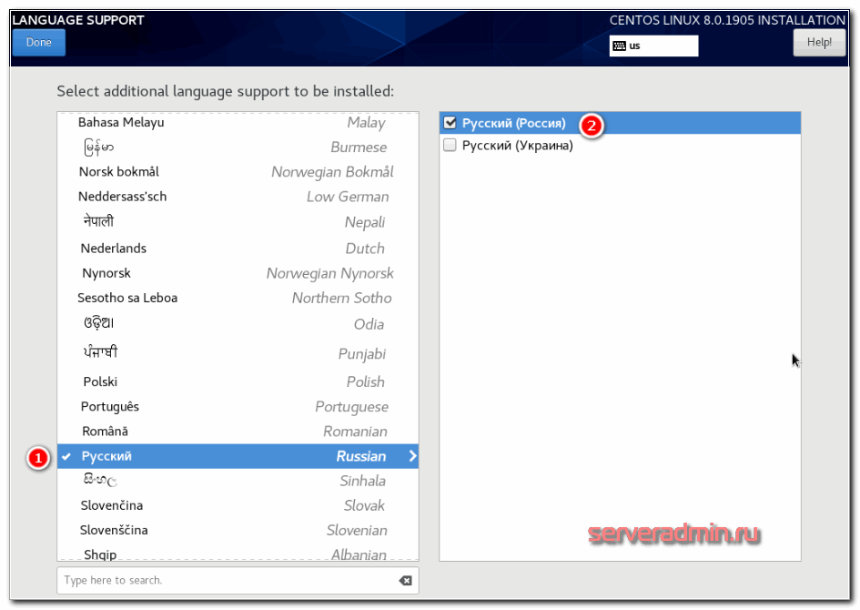Когда все сделаете, жмите сверху на Done. В разделе Language Support можно выбрать дополнительные языки, которые будет поддерживать система. В принципе, настраивать прямо сейчас тут нет большой необходимости, если вы точно не знаете, понадобится ли вам какое-то еще язык, помимо английского. Все это можно добавить и потом. Но если точно знаете, что нужен еще один язык в системе, например, Русский может понадобиться, если будете использовать Сервер 1С, то добавляйте сразу.