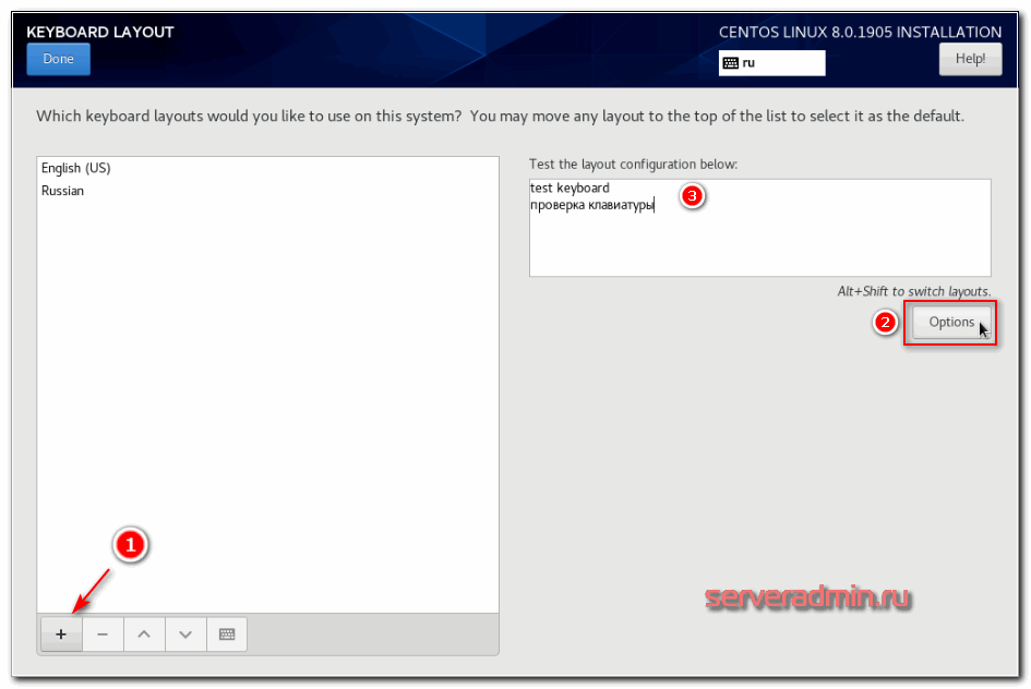 - Тестируем раскладки и переключение. Если все в порядке, идем дальше.