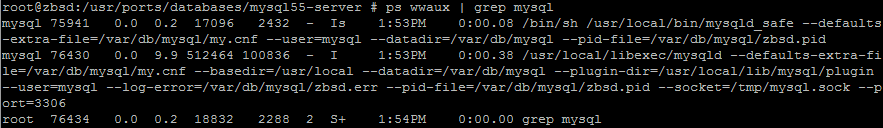 В случае ошибок смотрите лог /var/db/mysql/<hostname>.err,где <hostname> — имя хоста.