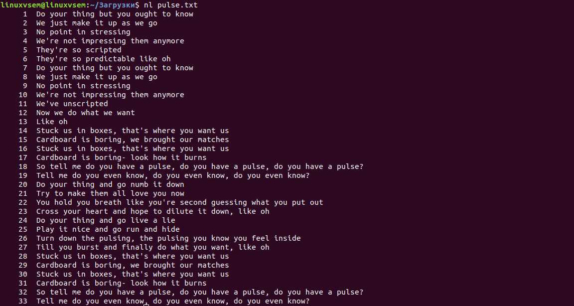 Обозначение чисел в Linux реализуется за счет команды nl.
