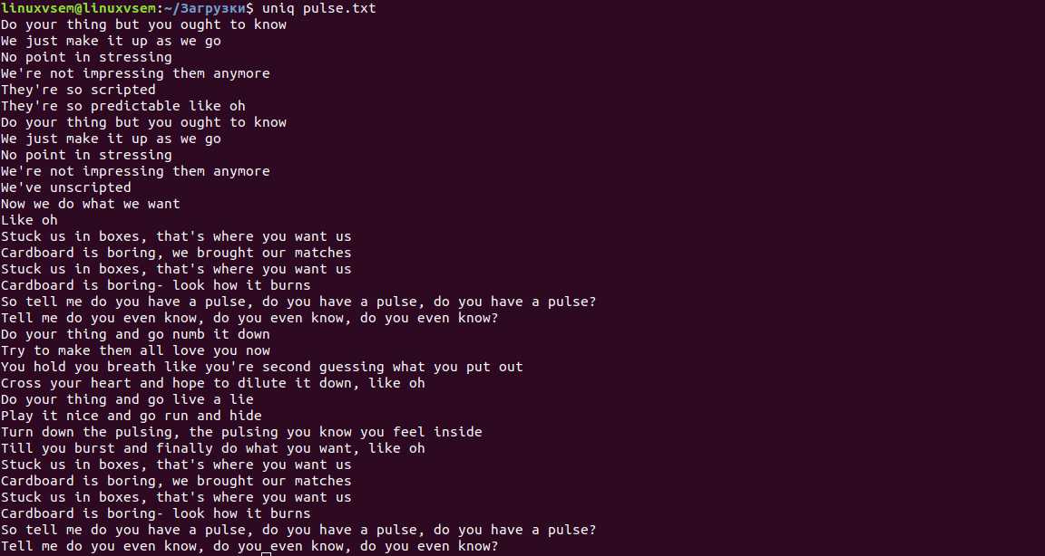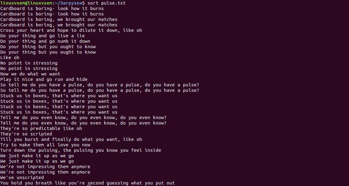 paul@laika:~/test$ cat winter.txt Сегодня очень холодно! paul@laika:~/test$ cat winter.txt > cold.txt paul@laika:~/test$ cat cold.txt Сегодня очень холодно! paul@laika:~/test$