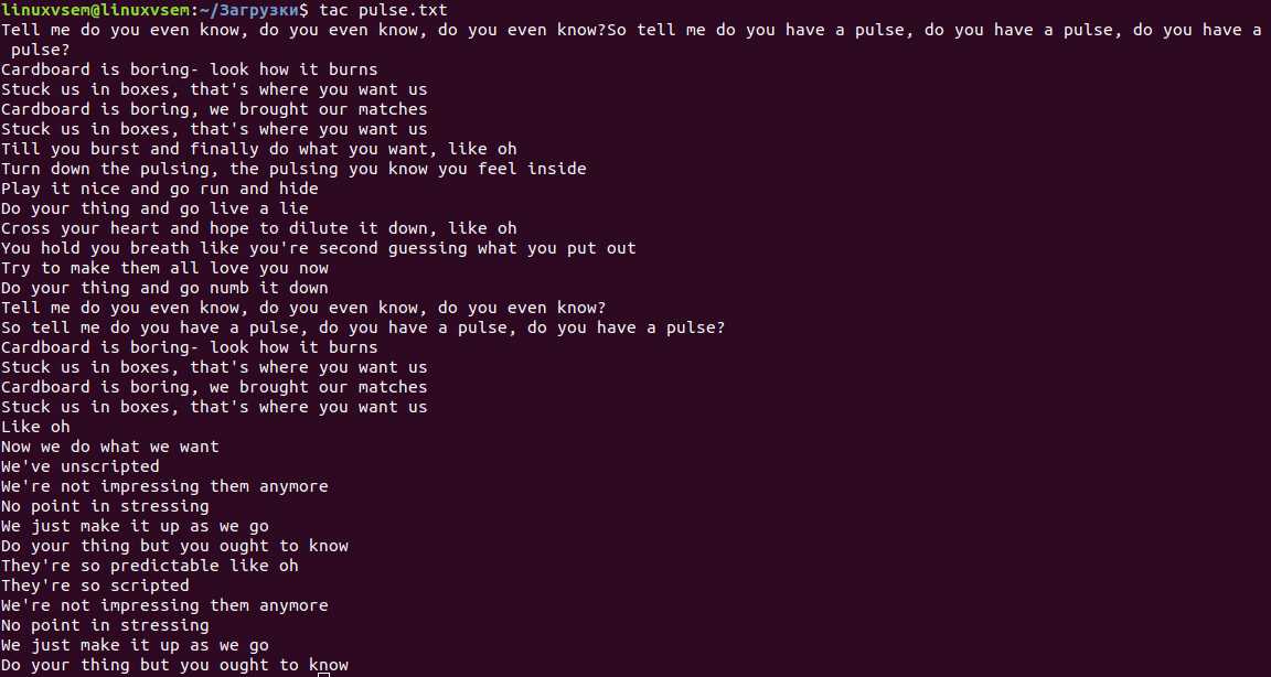 Данная команда противоположна head. Tail — это команда, которая печатает последние строки ввода. По умолчанию он напечатает последние 10 строк, но мы можем изменить это с помощью аргумента командной строки.