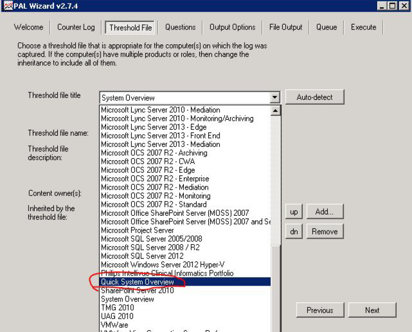 На вкладке Threshold File находится список шаблонов, которые можно экспортировать в формат xml и использовать как список счетчиков для сборщика данных.