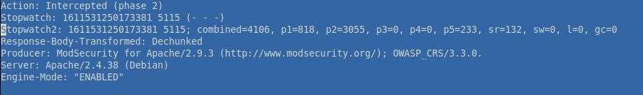 And in the audit log (), you can see the following line in section H, which means ModSecurity detected and blocked this SQL injection attack by using OWASP CRS v3.3.0.