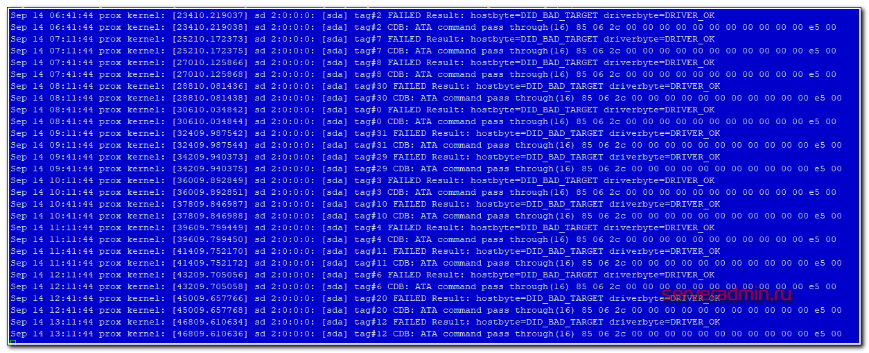 Убедился, что один диск выпал из массива. В системном логе увидел следующее.