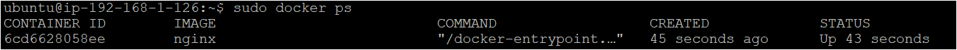 3. Now, run the docker ps command to verify the container is running. The command will list all the running containers running on the Docker host.