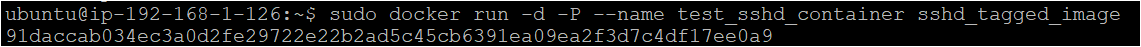 6. Run to verify SSH connectivity between the Docker host and the container. The command list’s the port mappings or a specific mapping for the container.