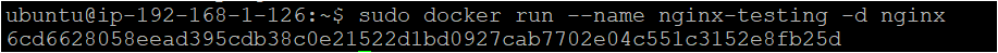 After the successful execution of the Docker run command, you will see that the container ID is generated below.