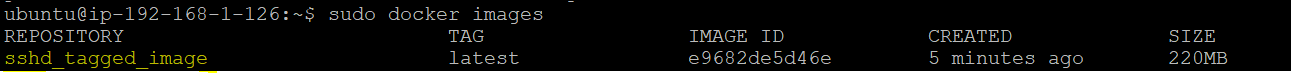4. Now, run the command to inspect the created image. Note the REPOSITORY attribute. This attribute is the tag created with the flag in the previous step.