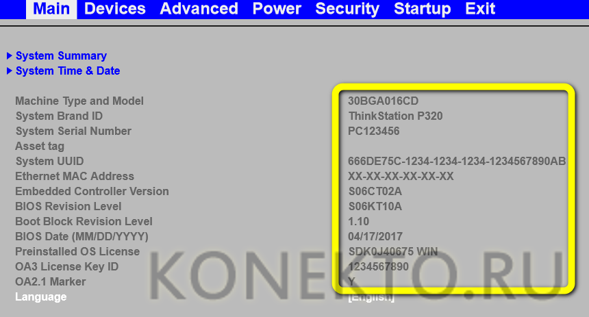 На этой вкладке, в зависимости от модификации BIOS, представлены следующие справочные данные о компьютере или ноутбуке: