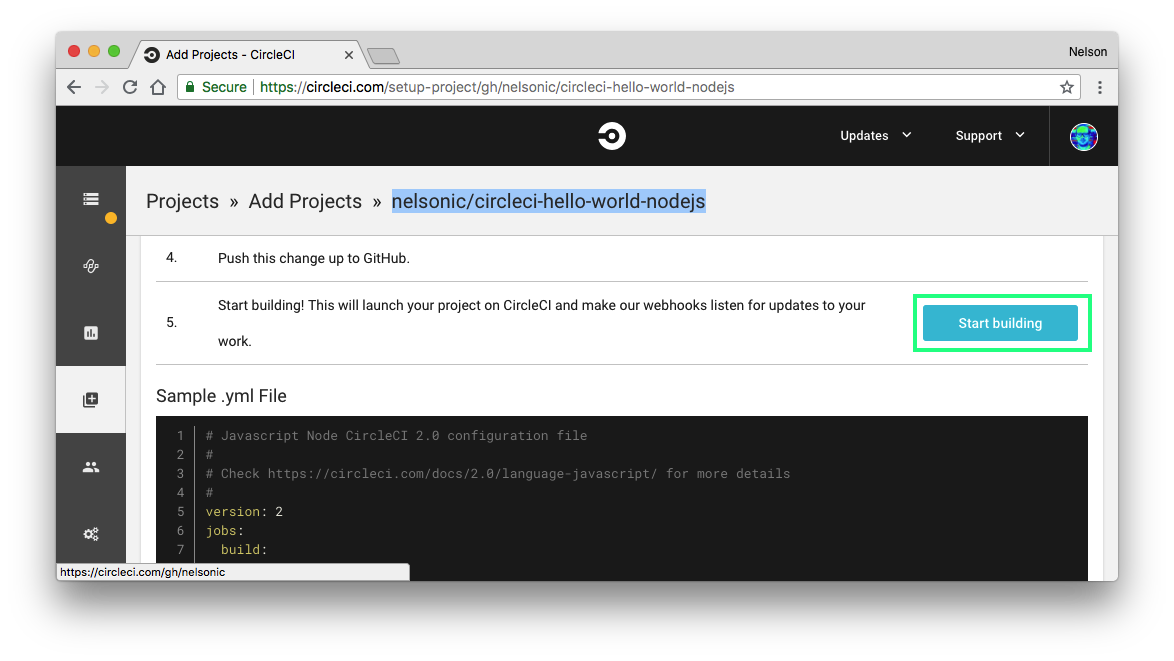 This will kick off your first build process with CircleCI!