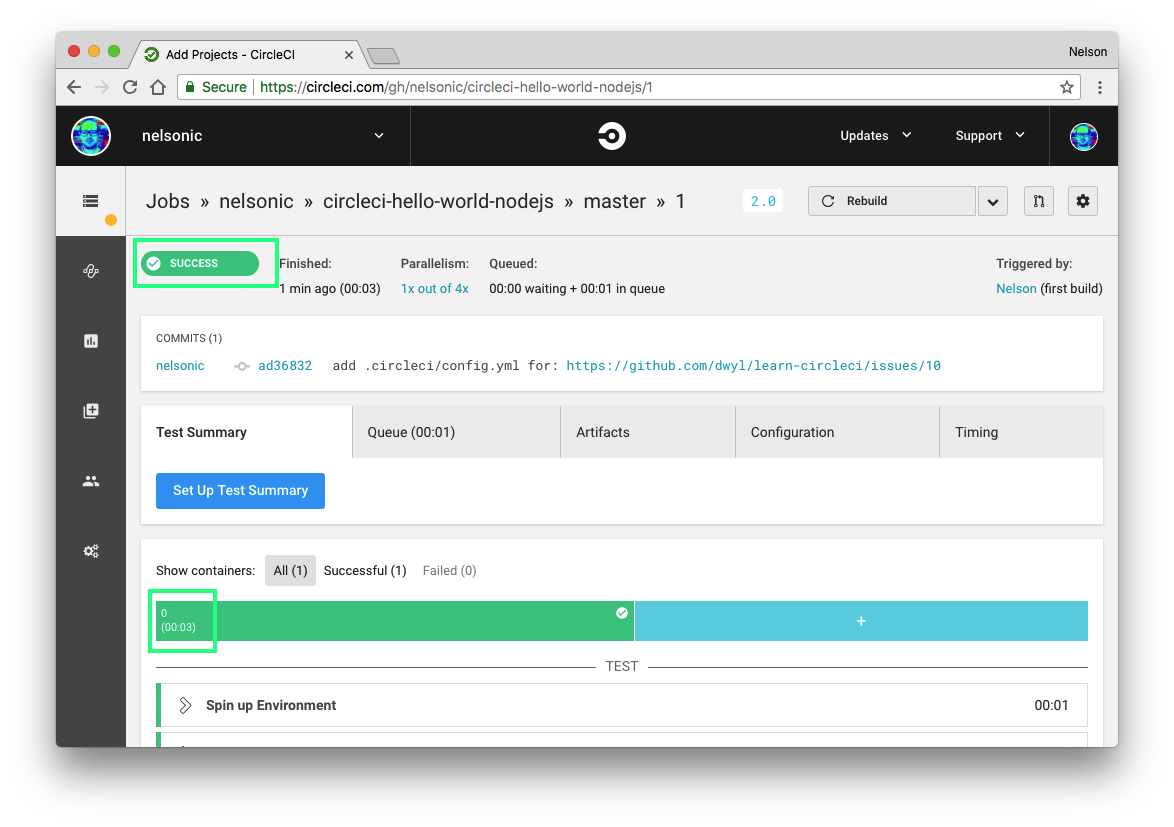 https://github.com/nelsonic/circleci-hello-world-nodejs/commits/master