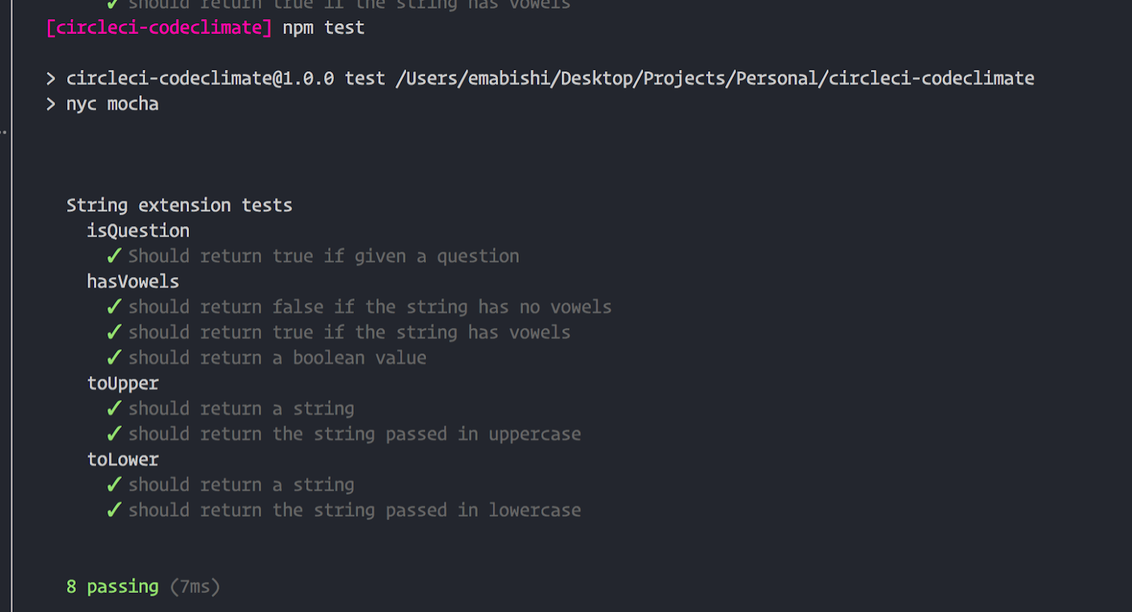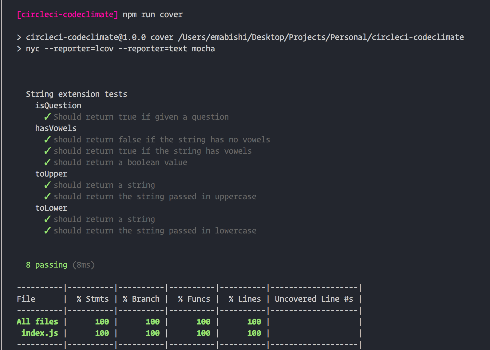 All we’re doing here is instructing CircleCI to install our project’s dependencies, run our tests, and then generate our coverage report.