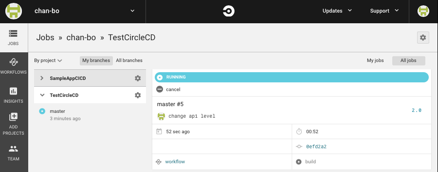 3. After Set Up Project Go to > JOBS or WORKFLOWS you will see your project was running build