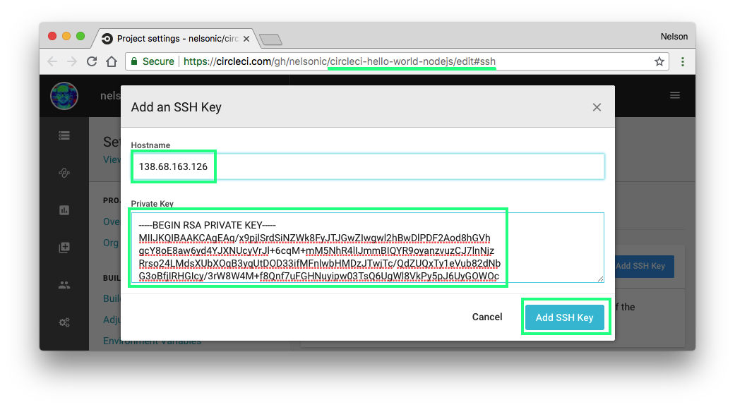 we need to add the SSH (RSA) key to CircleCI.