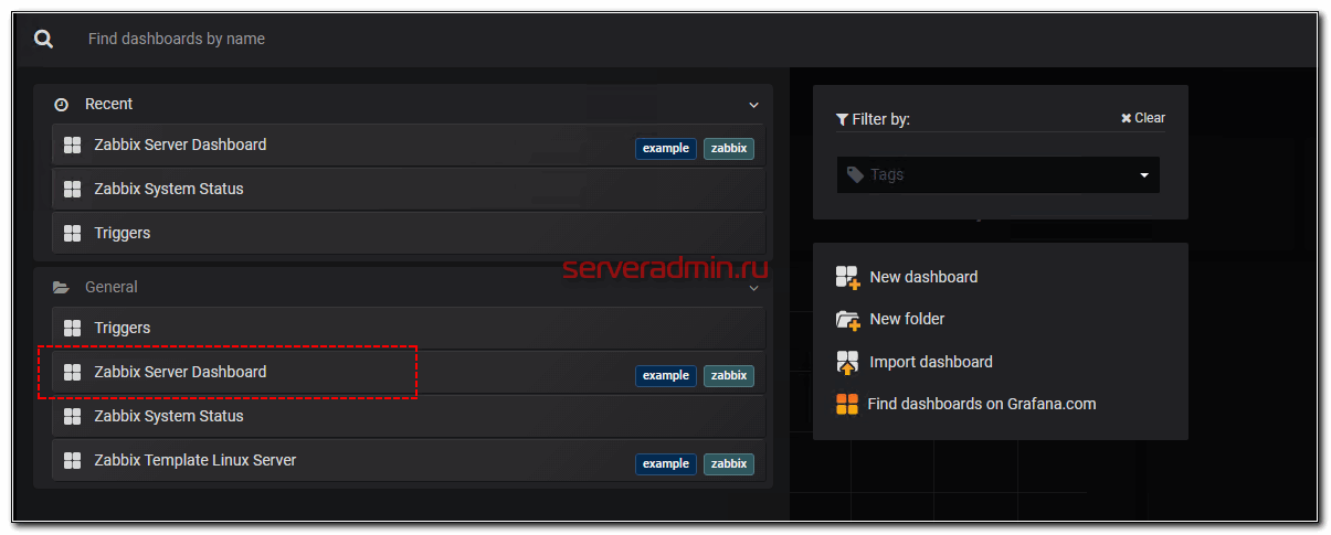 Ну и выполнить их Import. Дальше опять идите на главную и добавляйте импортированный дашборд.