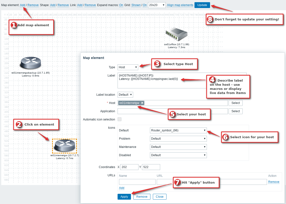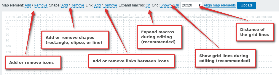 Unfortunately, Zabbix maps are not perfect, they can’t display labels on two or more links without overlapping and links themselves are barely visible.