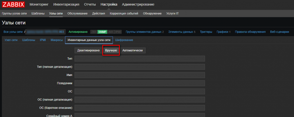 - Элементы данных — набор самостоятельных метрик, по которым происходит сбор данных с узлов сети. Настройка элементов данных производится на вкладке «Элемент данных» или в автоматическом режиме — через подключение шаблона.